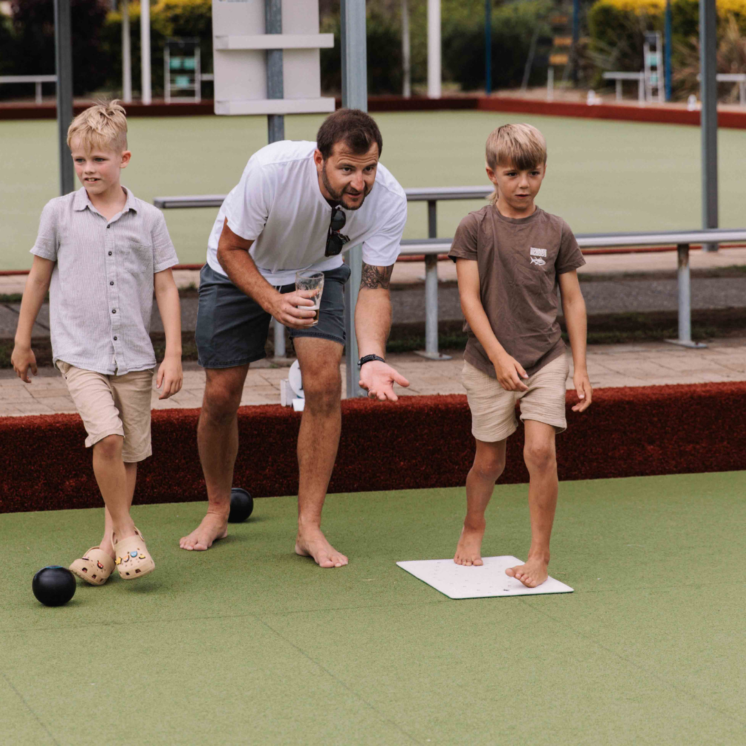 Challenge the family to a friendly game of barefoot bowls. All equipment and basic rules are provided, so everyone can join in.
